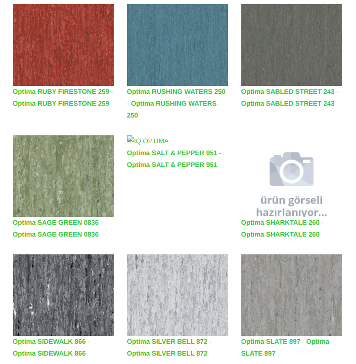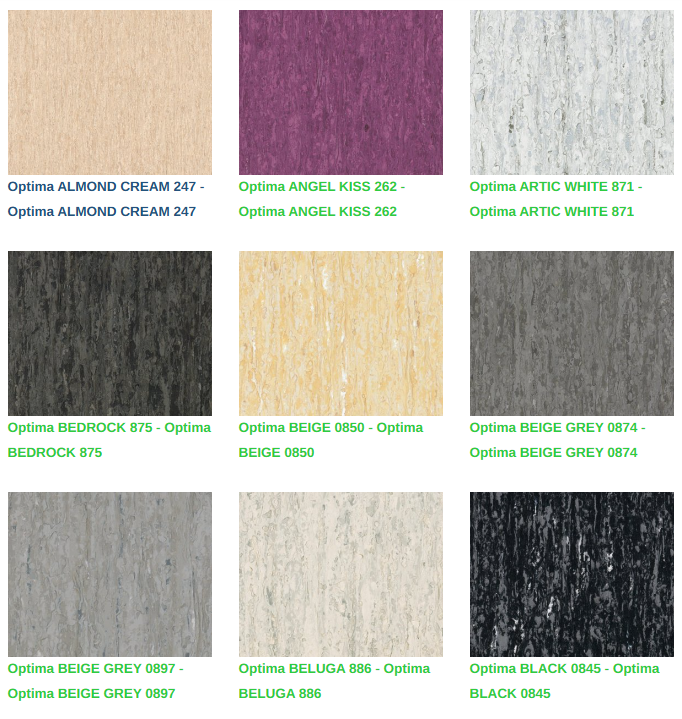 Çeşitli formatlar ve aksesuarların yanında 64 renkli inanılmaz bir renk paleti mevcut olan iQ Optima, eğitim ve sağlık tesisleri için uyarlanmış, gerçek bir çok çözümlü tekliftir. iQ serisinin bir parçası olan bu koleksiyon, yoğun trafik alanları için üstün leke ve aşınma direnci ile birlikte aşırı dayanıklılık sunar ve piyasadaki en iyi yaşam döngüsü maliyetlerinden birine sahiptir. Cilaya gerek duymadan basit bir kuru fırçalama ile orijinal görünümü geri yakalanır.