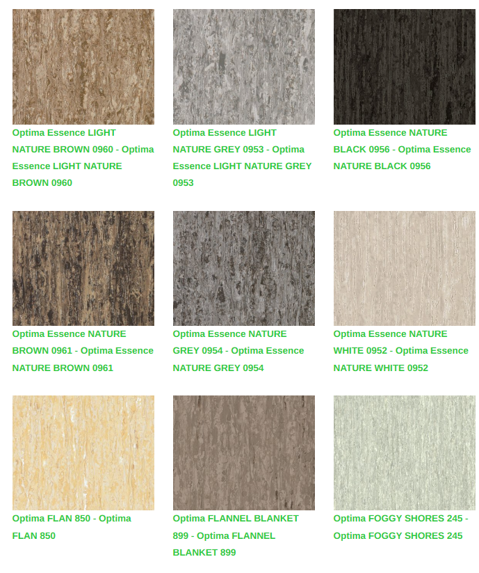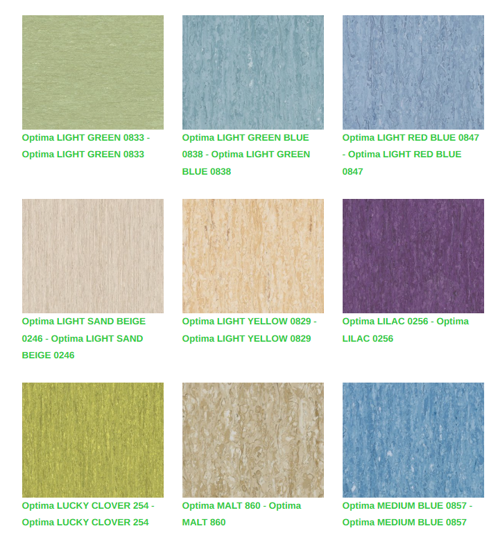 Çeşitli formatlar ve aksesuarların yanında 64 renkli inanılmaz bir renk paleti mevcut olan iQ Optima, eğitim ve sağlık tesisleri için uyarlanmış, gerçek bir çok çözümlü tekliftir. iQ serisinin bir parçası olan bu koleksiyon, yoğun trafik alanları için üstün leke ve aşınma direnci ile birlikte aşırı dayanıklılık sunar ve piyasadaki en iyi yaşam döngüsü maliyetlerinden birine sahiptir. Cilaya gerek duymadan basit bir kuru fırçalama ile orijinal görünümü geri yakalanır.